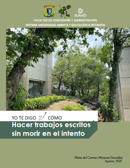 La Facultad de Contaduría y Administración a través de su Sistema Universidad Abierta y Educación a Distancia ofrece esta colección titulada “Yo te digo cómo…” conformada por varias guías de apoyo para el estudiante, en temas fundamentales de técnicas de estudio y de apoyo a su proceso de aprendizaje.